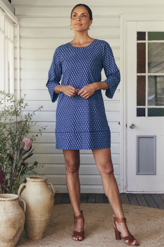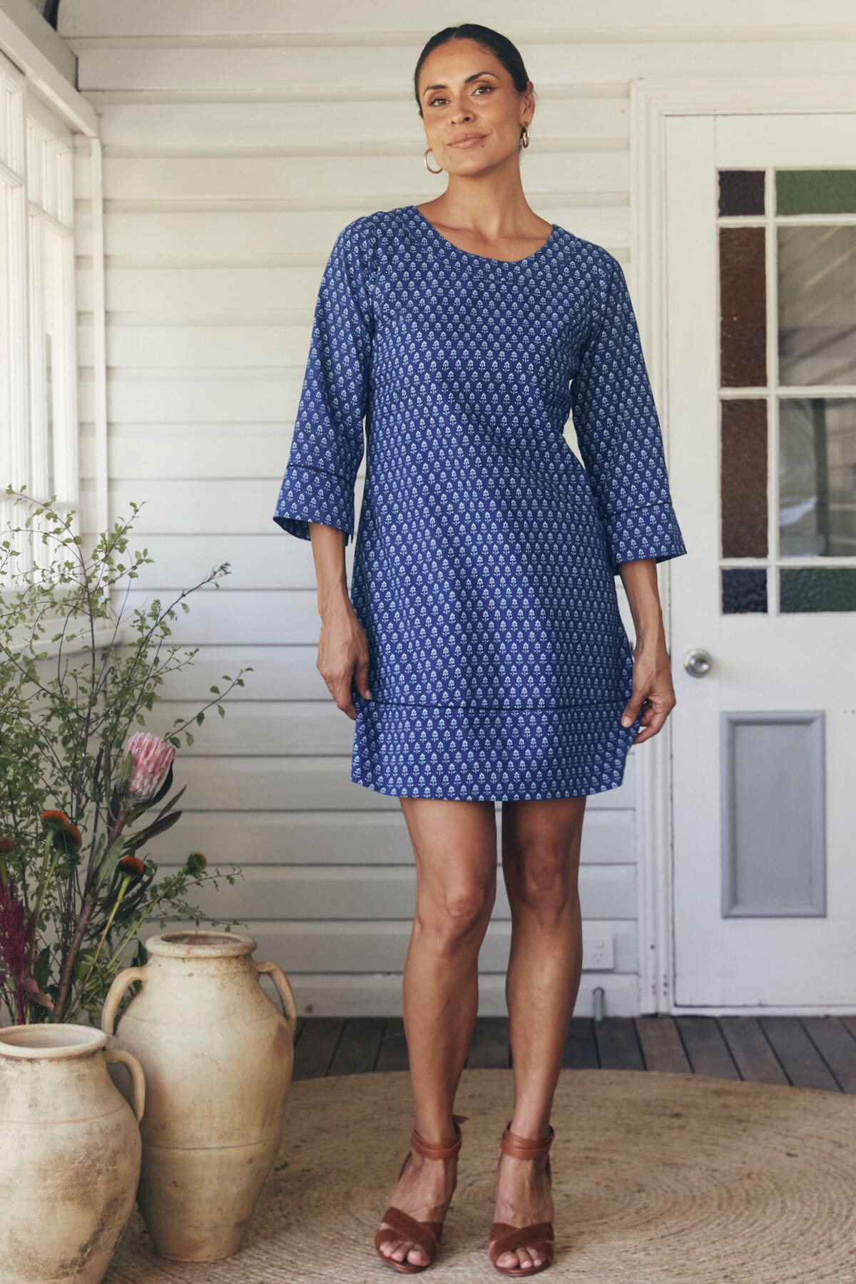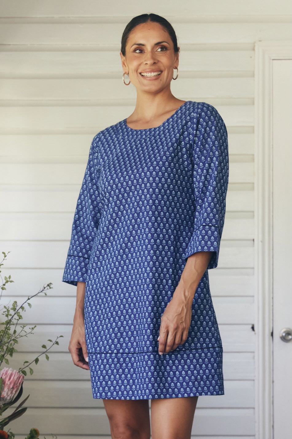 To check sizing, lay a similar garment flat and measure, be sure to double bust, waist, and hip measurements to match ours.
