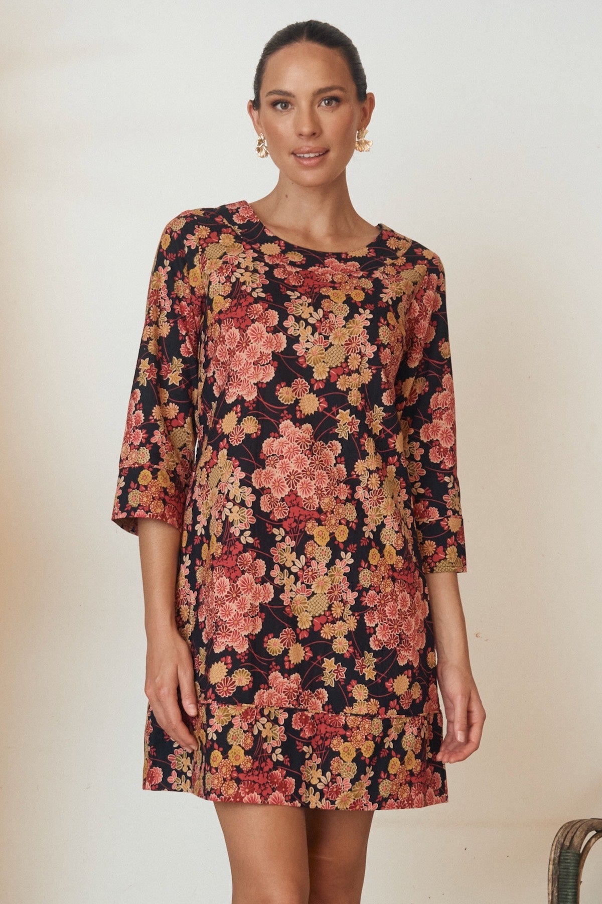 To check sizing, lay a similar garment flat and measure, be sure to double bust, waist, and hip measurements to match ours.