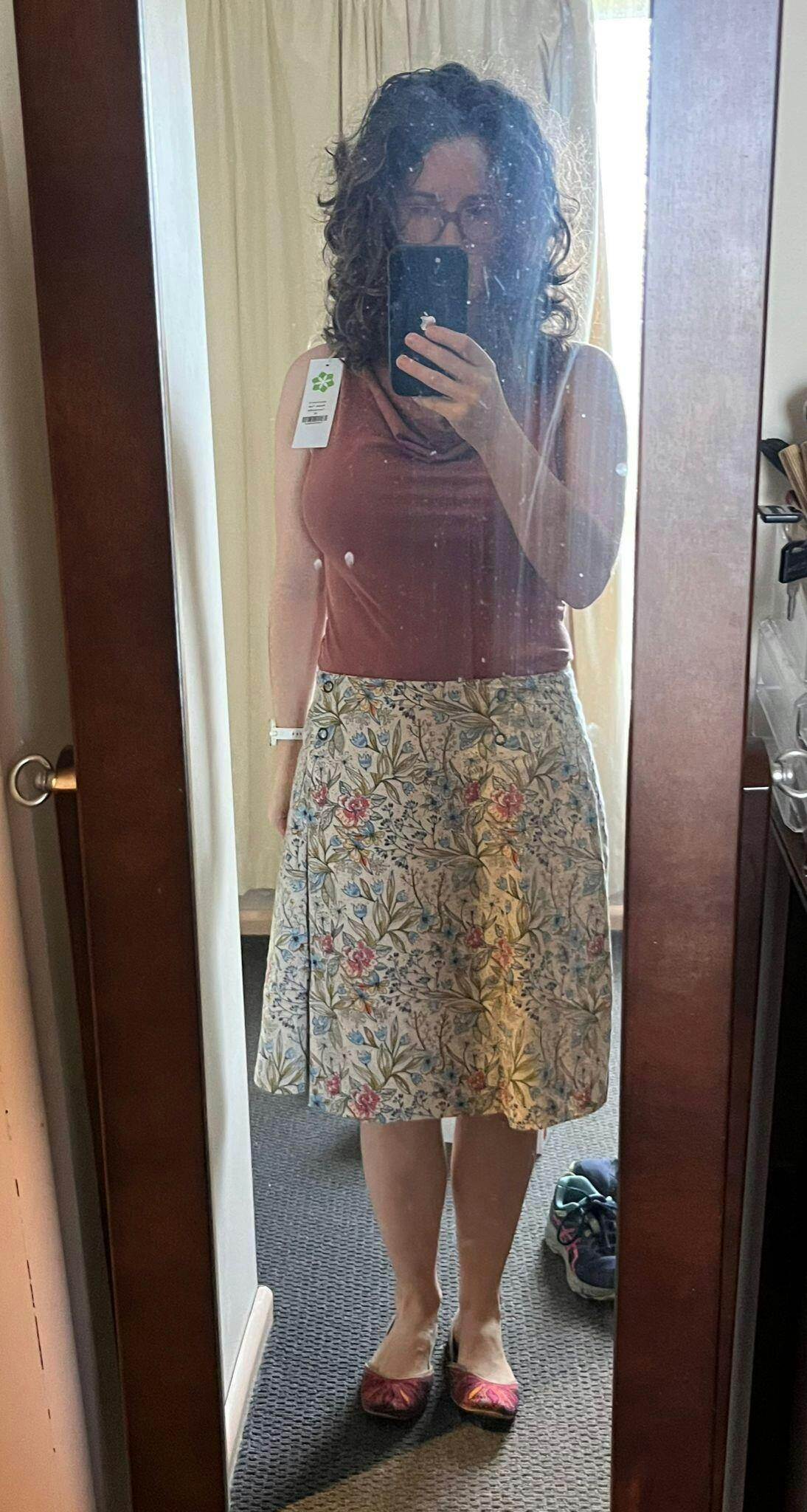 To check sizing, lay a similar garment flat and measure, be sure to double bust, waist, and hip measurements to match ours.