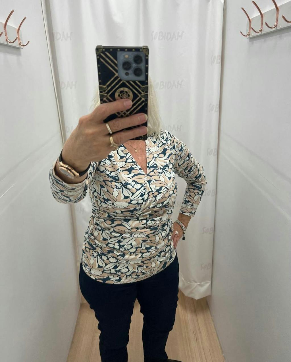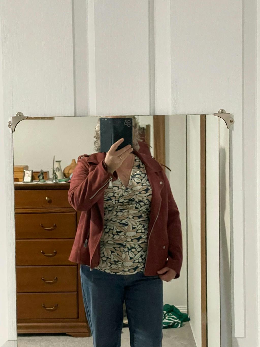 To check sizing, lay a similar garment flat and measure, be sure to double bust, waist, and hip measurements to match ours.