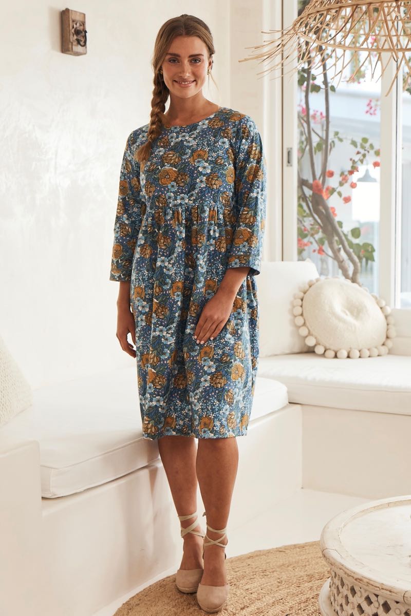 To check sizing, lay a similar garment flat and measure, be sure to double bust, waist, and hip measurements to match ours.