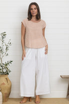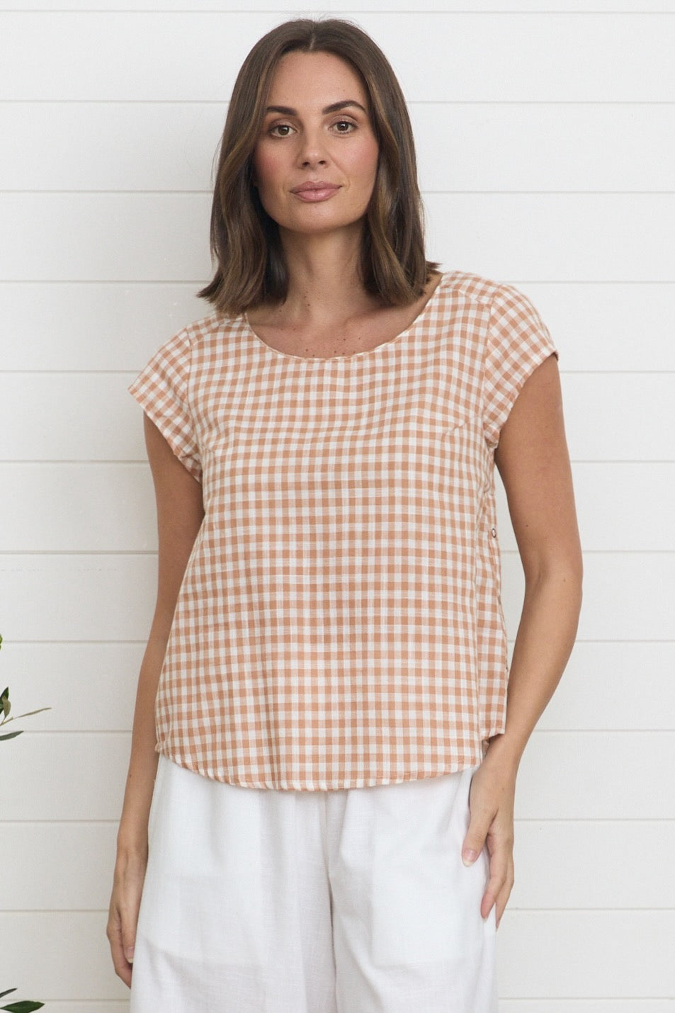 This cute design has capped sleeves, a small button at the back and three press studs that run down the bottom left side. With it’s loose cut fit, it’s a super cool design for those hot summer days.