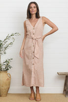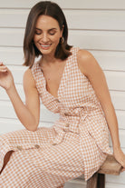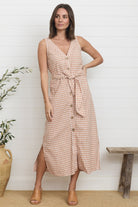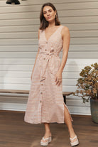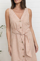 To check sizing, lay a similar garment flat and measure, be sure to double bust, waist, and hip measurements to match ours.