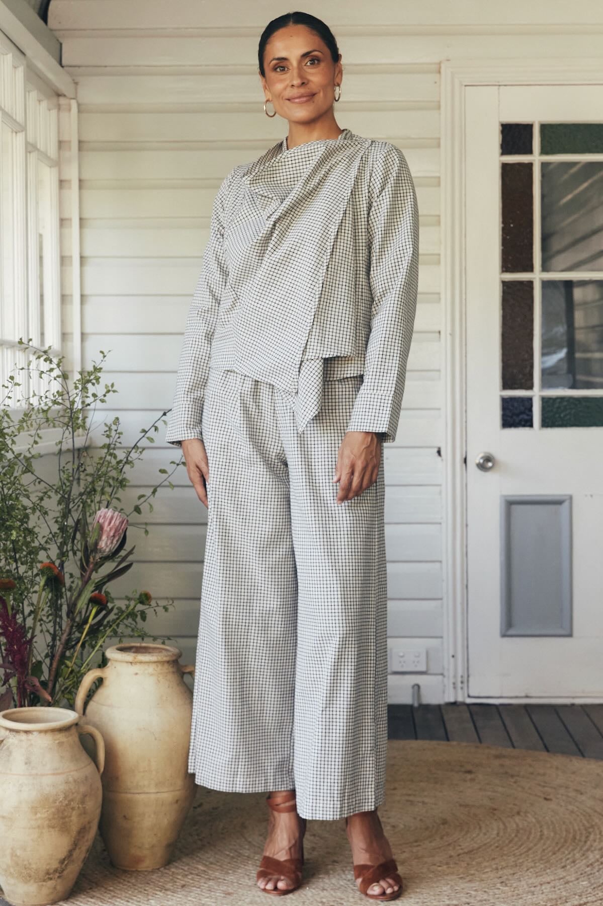 Pair our long coat with your favourite knit and jeans. On warmer days, reach for our waterfall drape layered over a cotton tee and wide-leg pants for something light and easy.