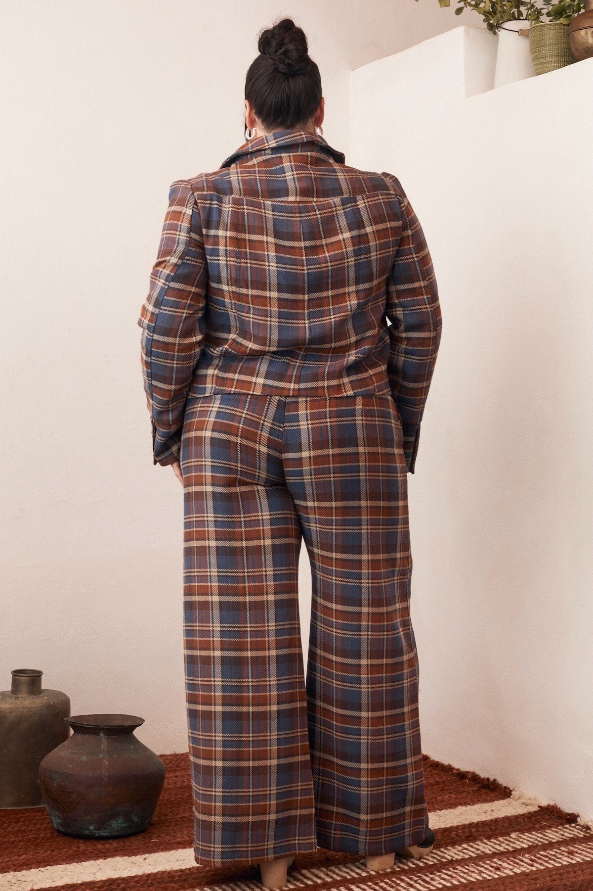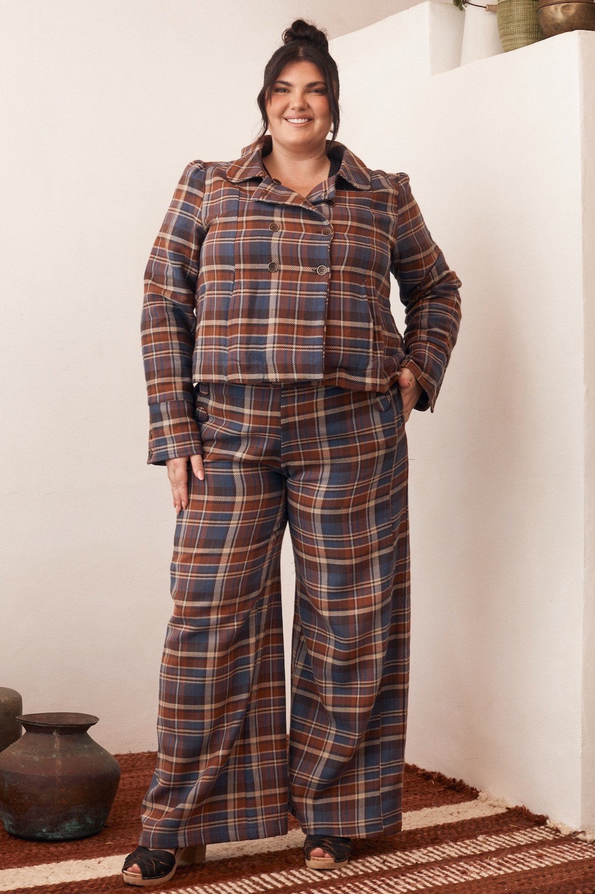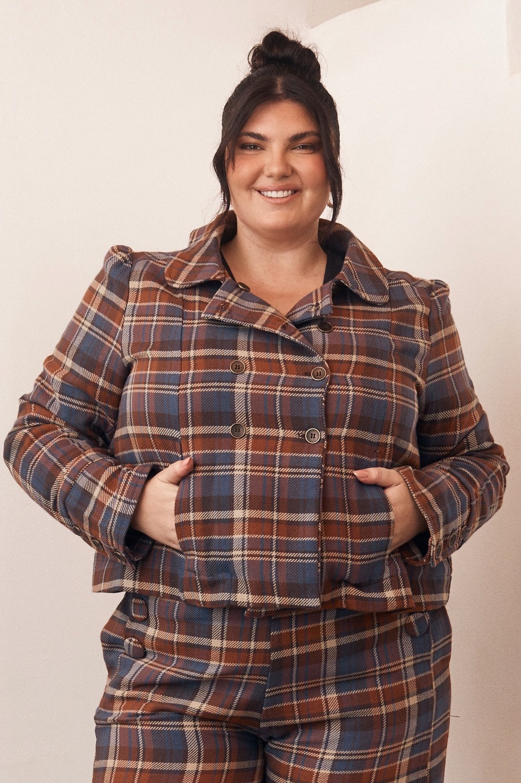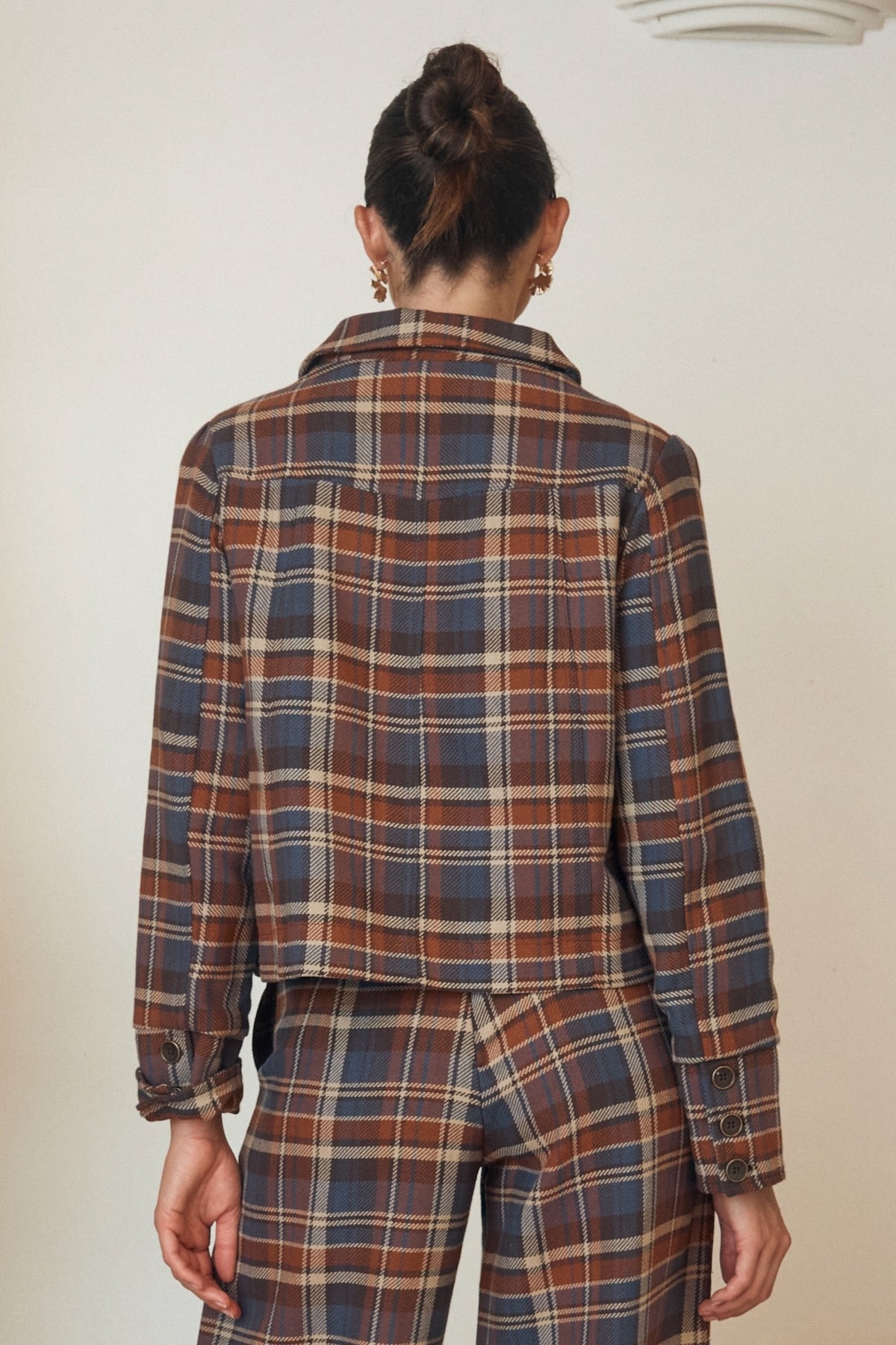 This fabric is used in some of our more structured and tartan styles. It has enough weight to hold shape, giving the jacket a neat, balanced silhouette. The weave allows for airflow, so it stays breathable throughout the day.