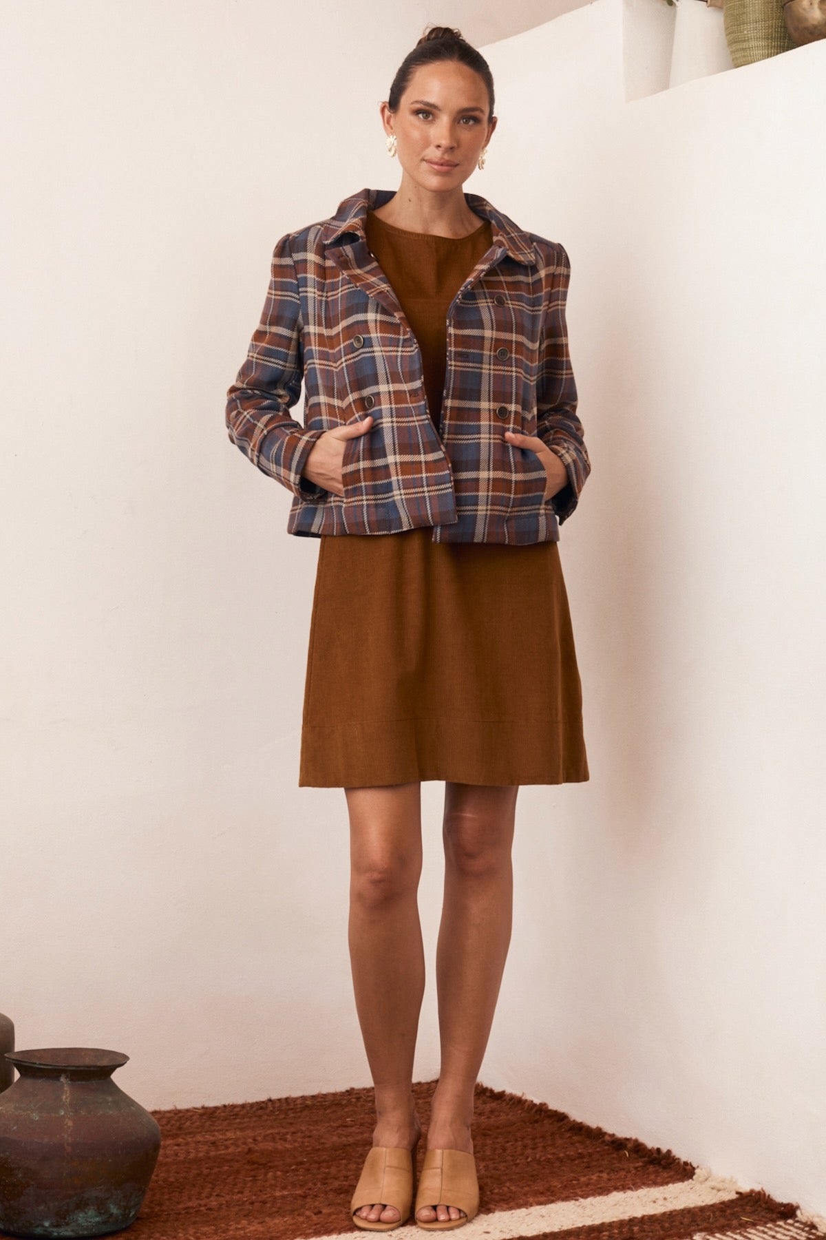 Our reversible jacket is a wise choice when packing light. Style one side with casual trousers and a relaxed top, then wear the other over a dress with boots for dressier outings.