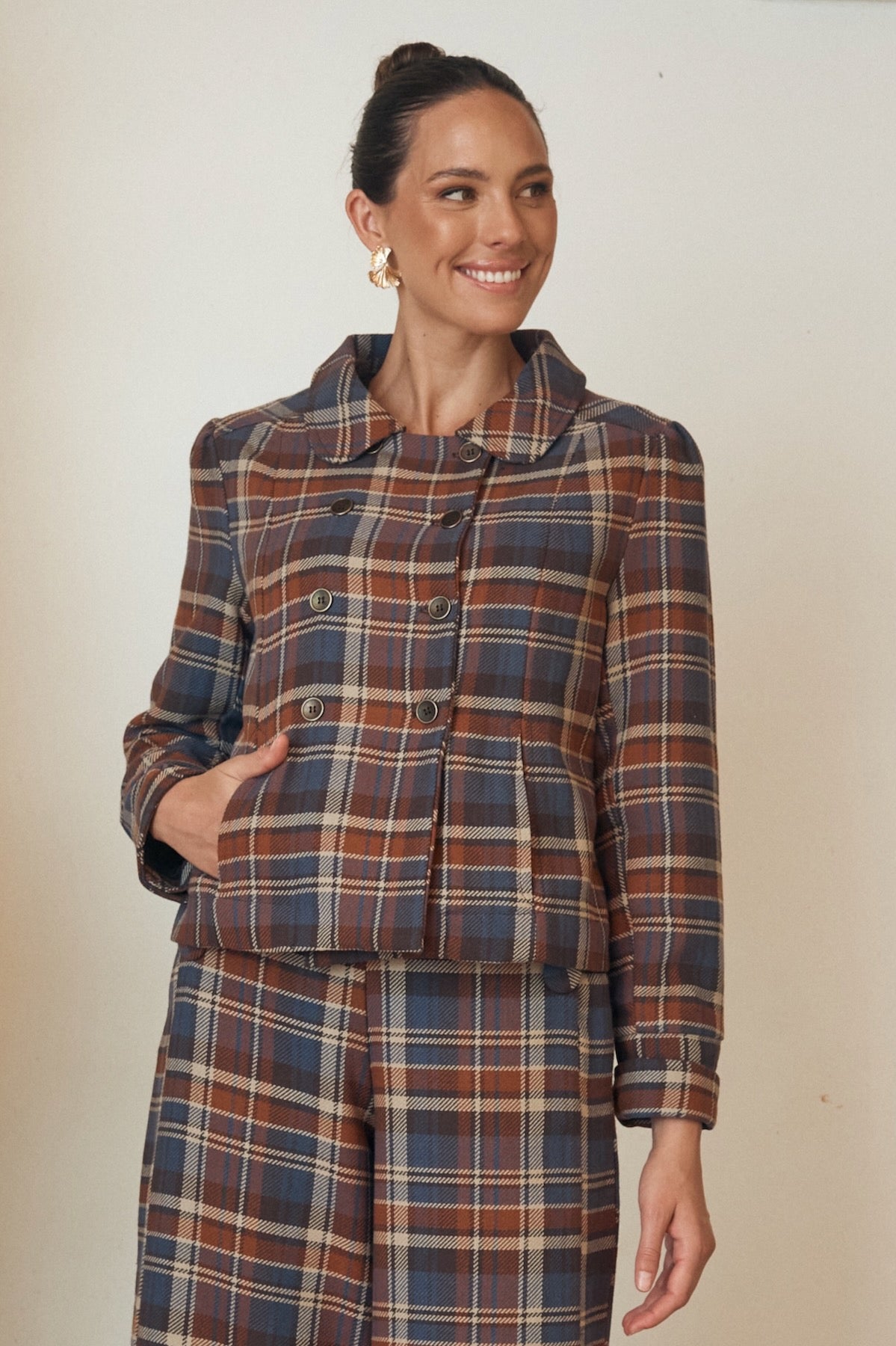Designed to sit above the hip, our cropped women’s jacket works beautifully with dresses and high-waisted pants. The shorter cut highlights your proportions, while wide sleeves and fully lined cuffs add shape and comfort. A discreet hook closure keeps the front simple and neat.