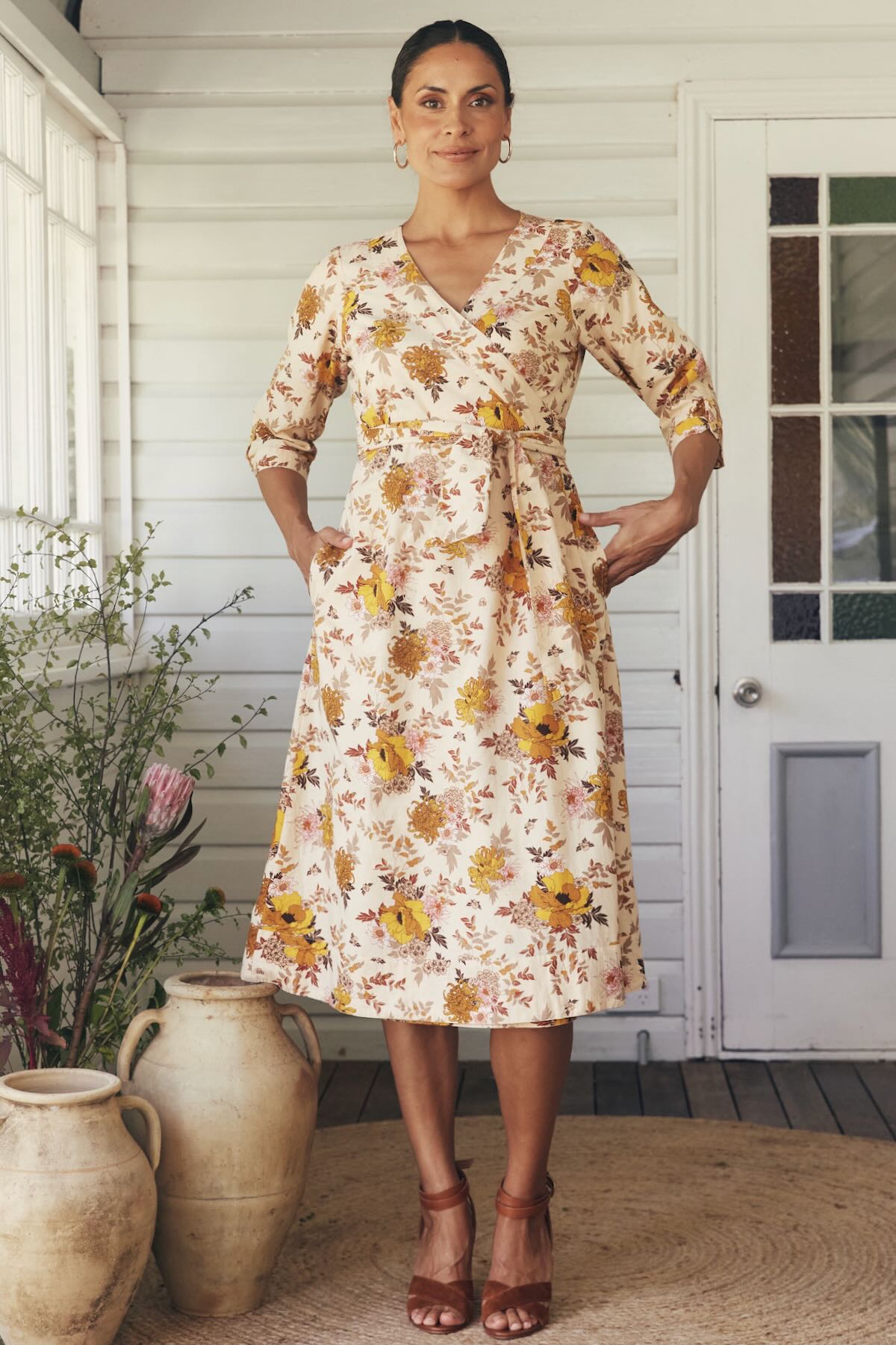 Our wrap styles are all about comfort and adjustability. A thick waist tie lets you find your ideal fit while enhancing the waist in a soft, natural way. You can tie it at the front, side or back — whatever feels best. Some include pockets, and all are crafted to be flattering without being fussy.