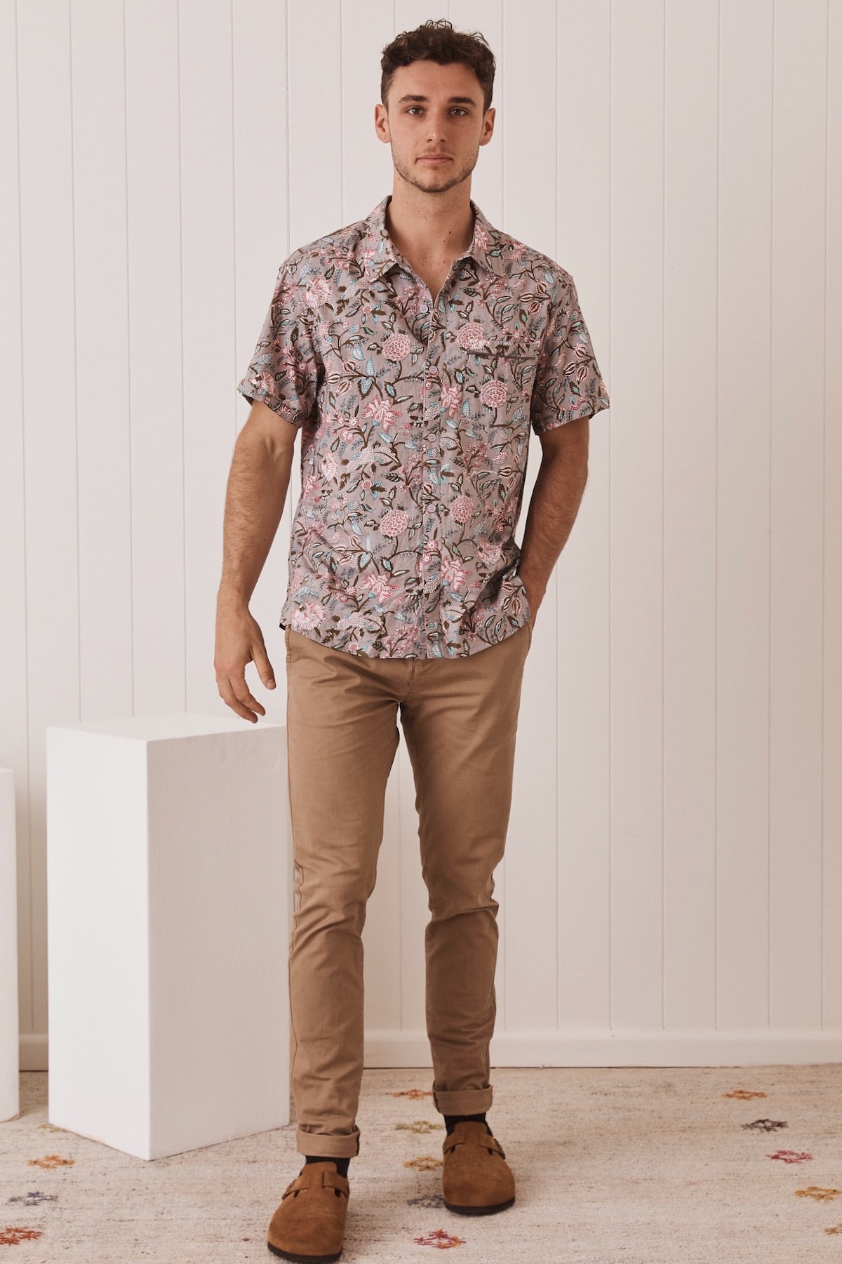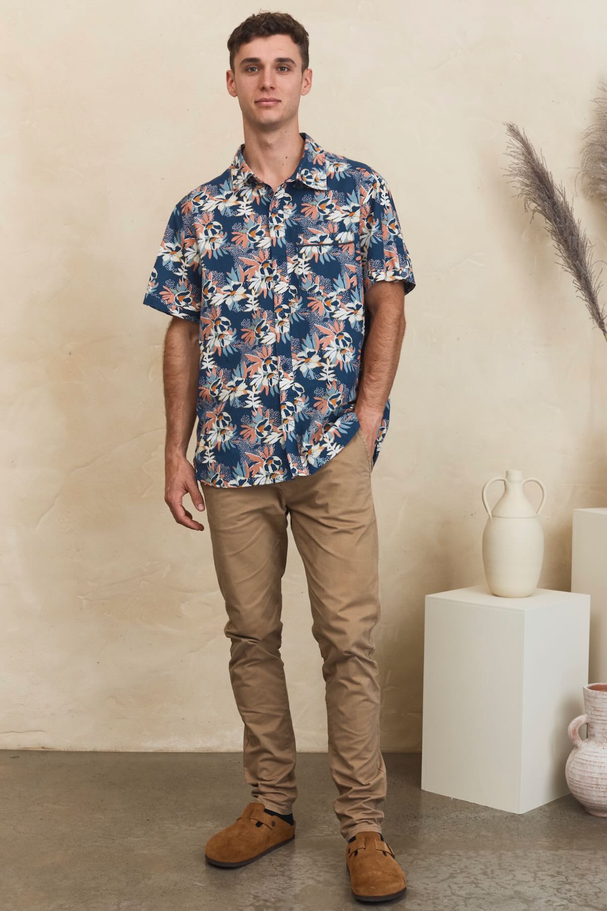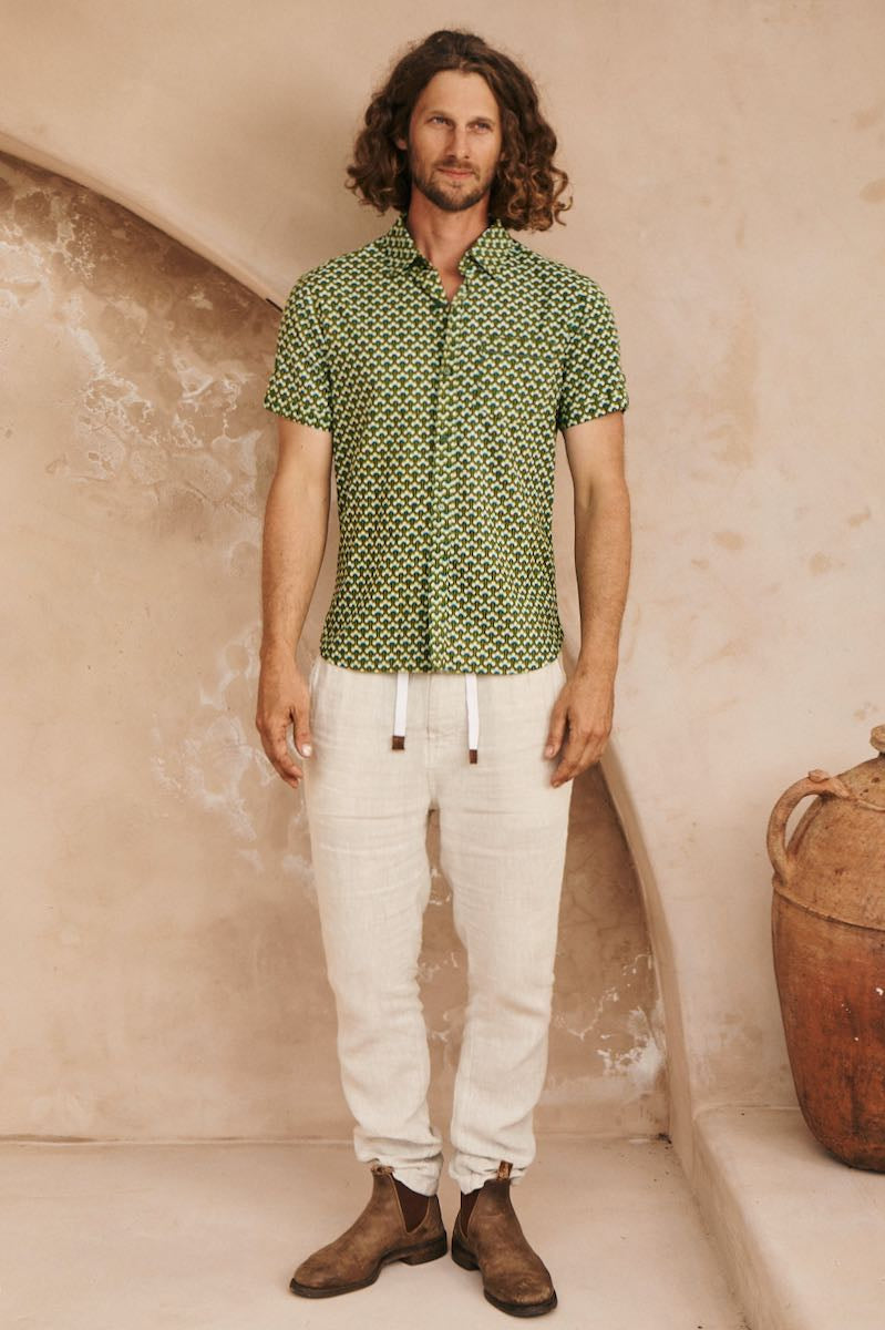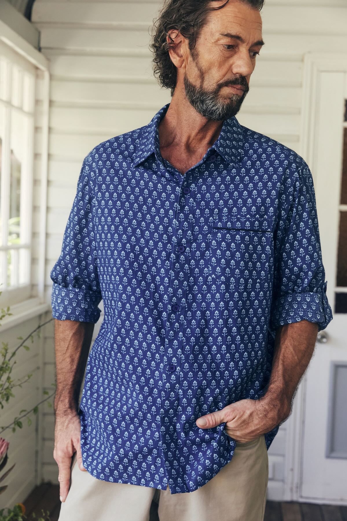 When the plan is dinner for two, our men’s shirts in lavender or peach keep things romantic. For a night out that’s a little busier, go for our electric blues or greens to add some spark. Team with brown or off-white trousers and loafers, and you’ve got a look your date will surely swoon over.