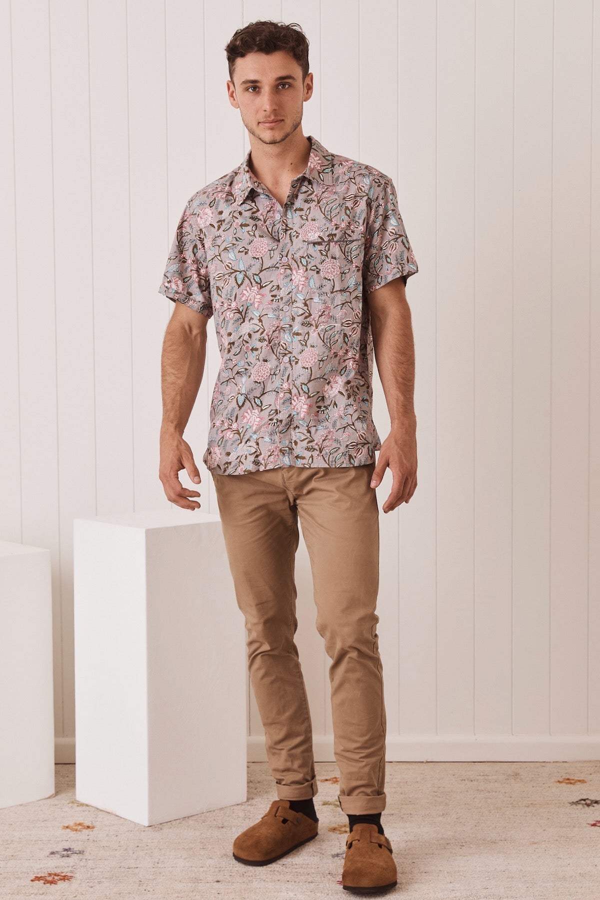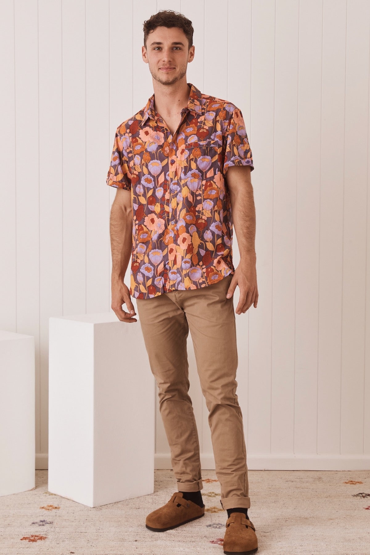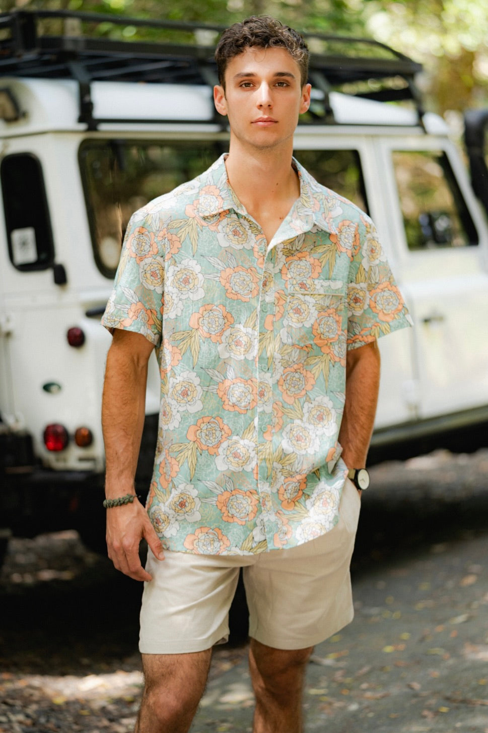 When the plan is dinner for two, our men’s shirts in lavender or peach keep things romantic. For a night out that’s a little busier, go for our electric blues or greens to add some spark. Team with brown or off-white trousers and loafers, and you’ve got a look your date will surely swoon over.