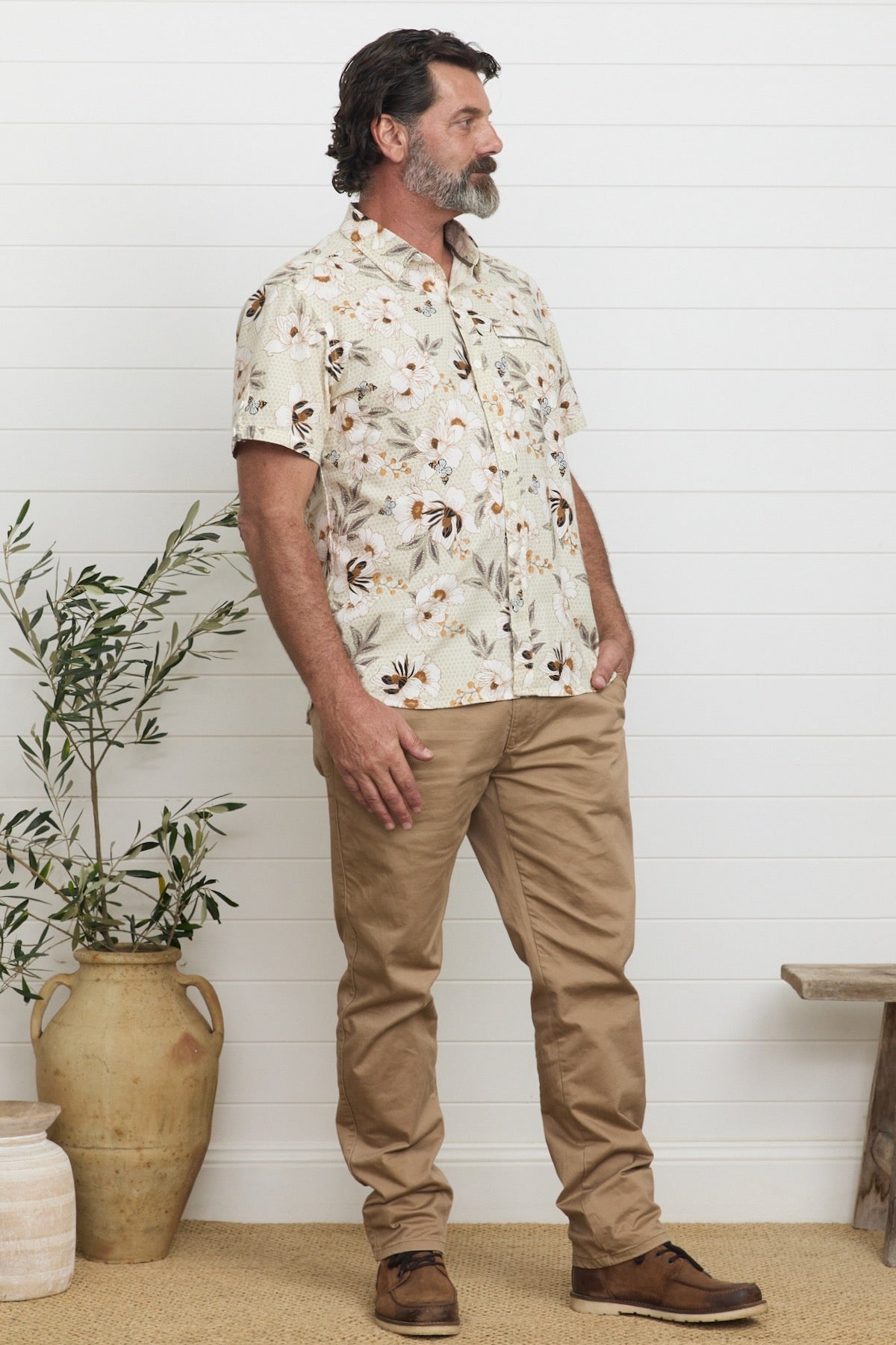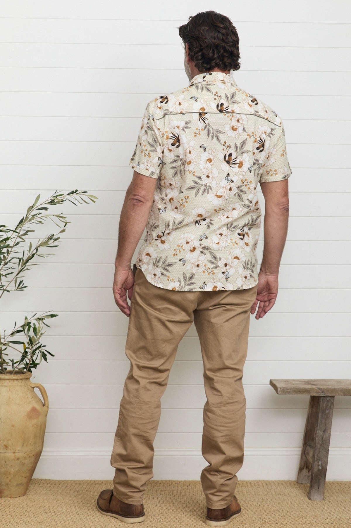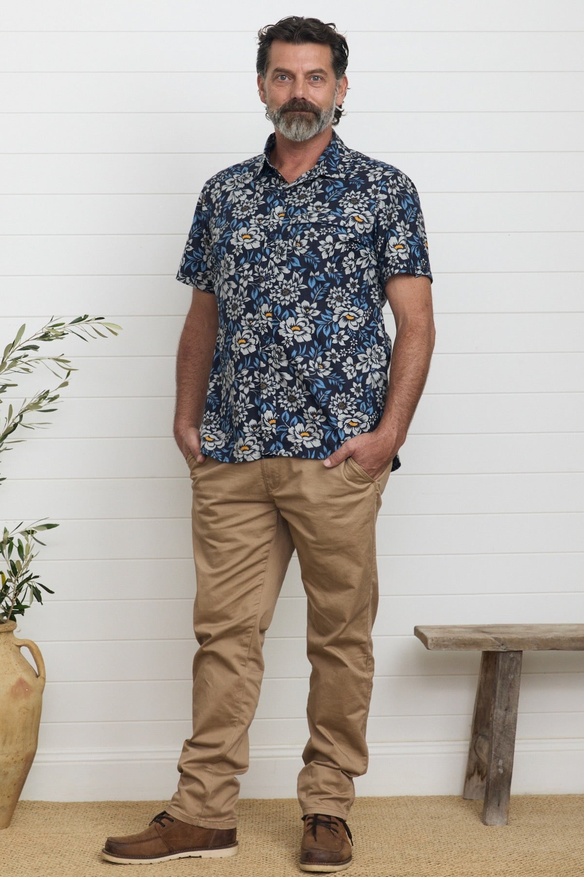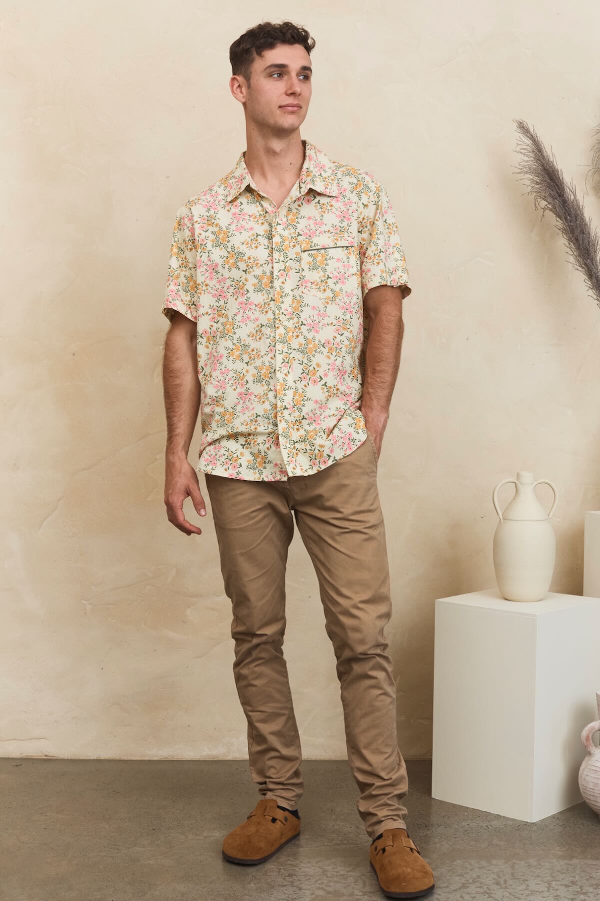 When the plan is dinner for two, our men’s shirts in lavender or peach keep things romantic. For a night out that’s a little busier, go for our electric blues or greens to add some spark. Team with brown or off-white trousers and loafers, and you’ve got a look your date will surely swoon over.