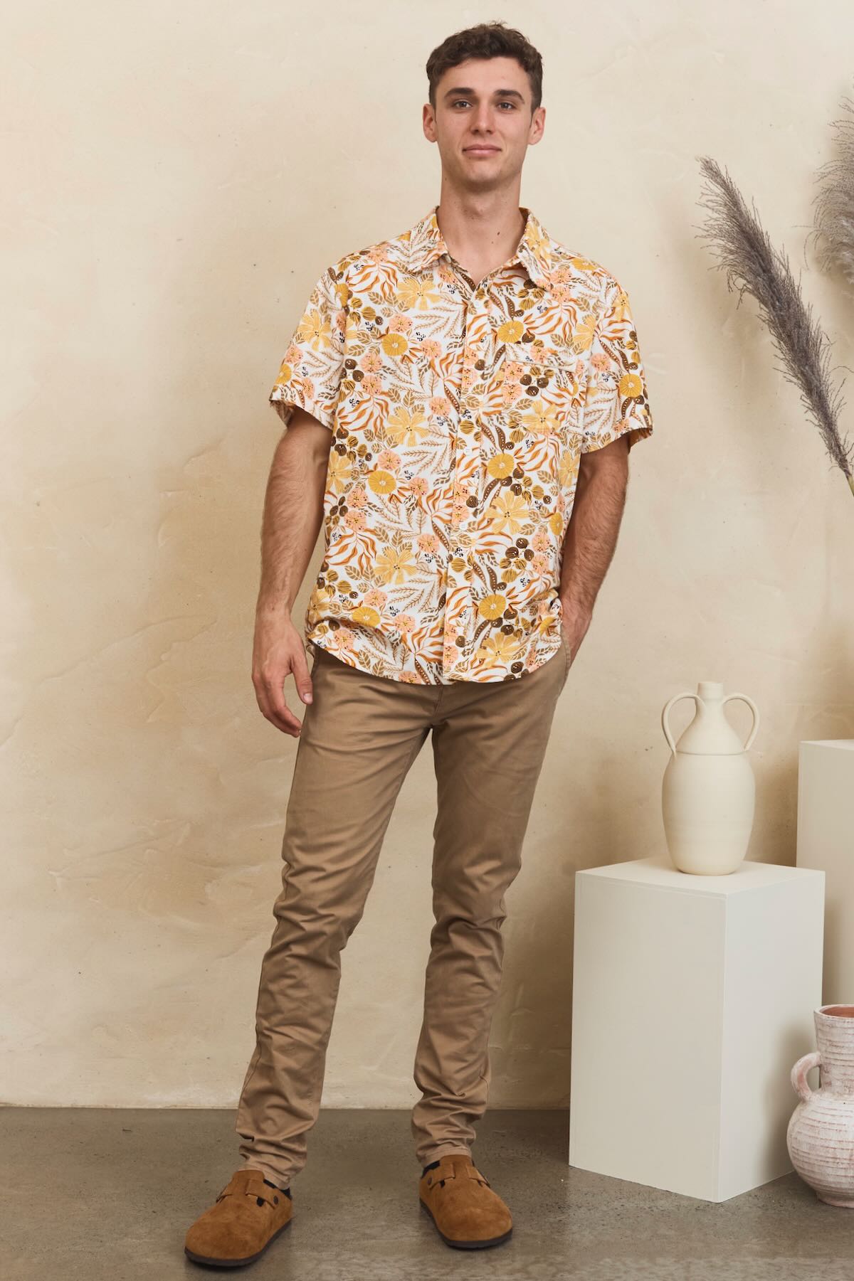 For trips and time by the water, our men’s short-sleeve shirts fit right in. Our yellows and oranges in particular feel right at home in the sun, bringing a bright and easy vibe. Pair with linen shorts and sandals for an effortless holiday look or with light chinos and slip-ons for a resort-ready style.