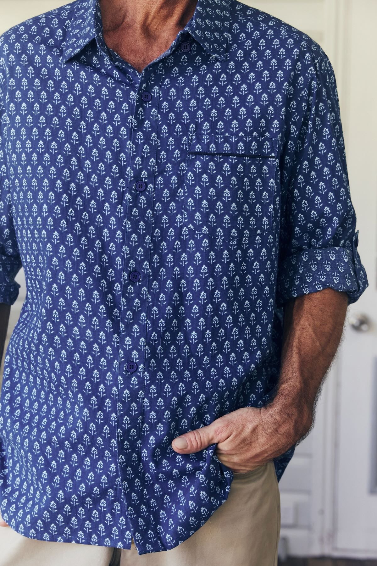 When it comes to the finer details, these men’s shirts don’t disappoint. A hidden last button keeps the line clean and neat, while a button-down collar frames the neckline with structure and balance. Even the piping across the back and pocket line speaks to the care in construction, bringing the whole look together.