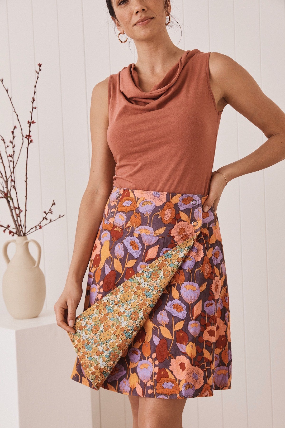 Our fully reversible skirts are here to keep things interesting. Two gorgeous prints give you options, depending on your mood (or the day of the week). With no ties to fuss over, just a clever, comfy fit, they’re ready when you are. Just flip, fasten and let the print do the talking.