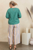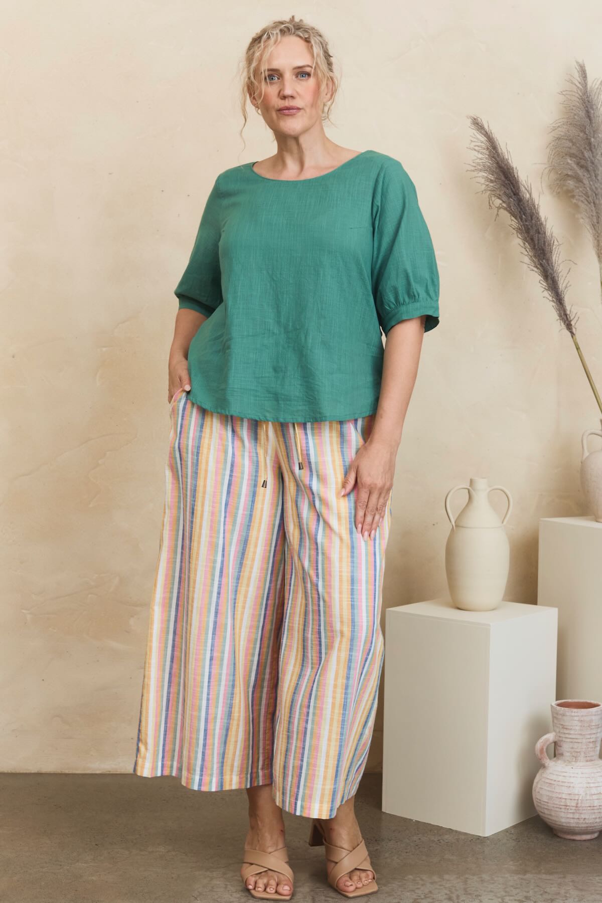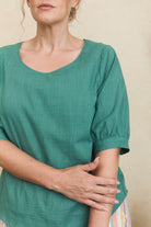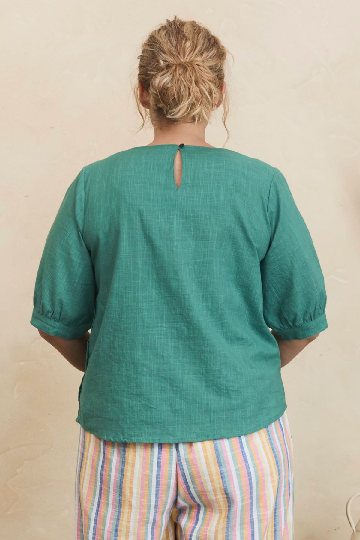 The Gigi Top offers the same playful charm as our beloved Remi, with a touch of elegance thanks to its puffed sleeves with cuffs. Featuring a loose, airy fit, it's perfect for staying cool and comfortable on warm days. A small button at the back and three press studs along the bottom left side add a subtle, stylish detail to this versatile piece.