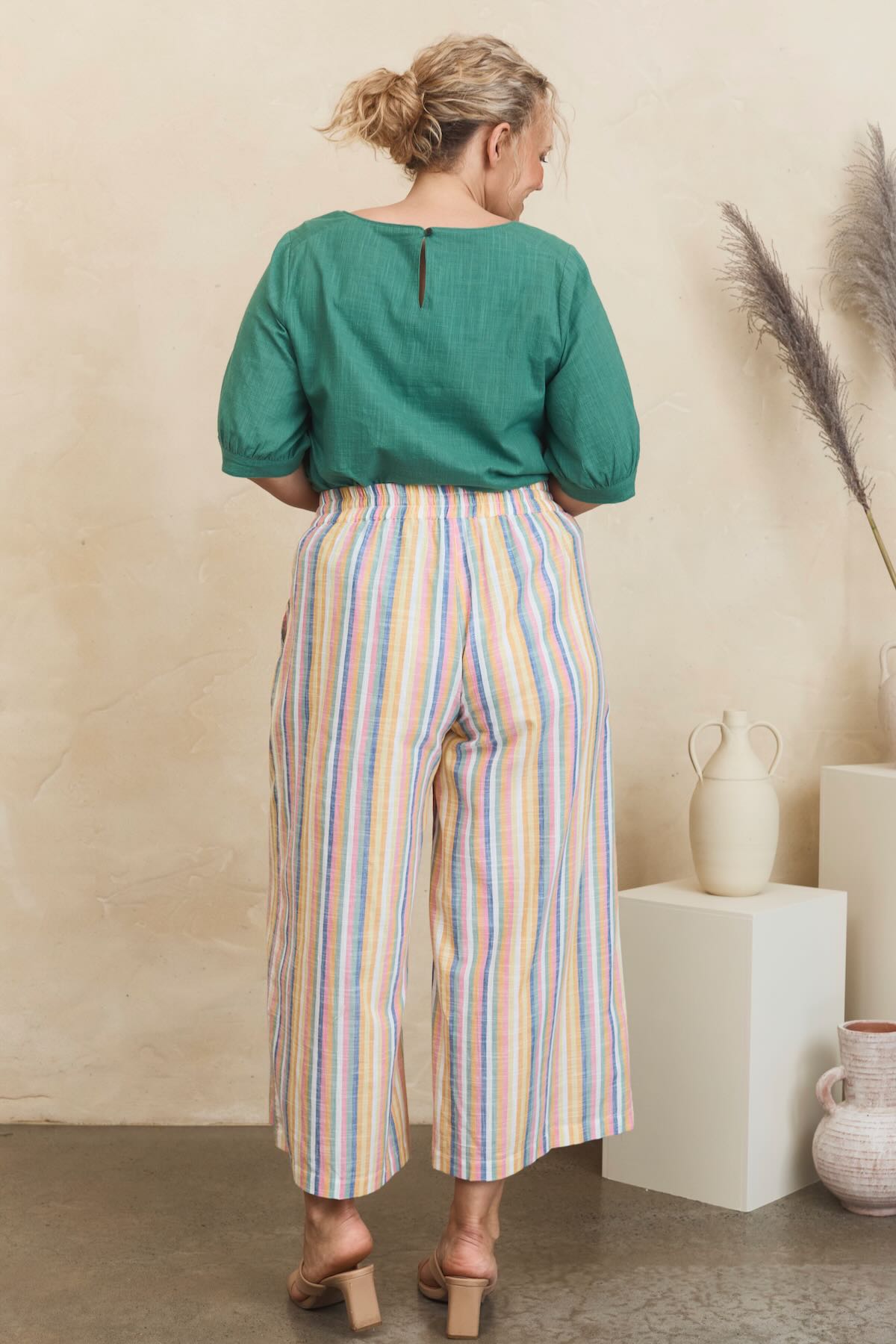 The Liv Trousers are the perfect blend of casual comfort and effortless style. With their relaxed 7/8 length and straight wide leg, these trousers are ideal for warmer days. The adjustable waist tie adds a playful touch while ensuring a comfortable, tailored fit for any occasion.