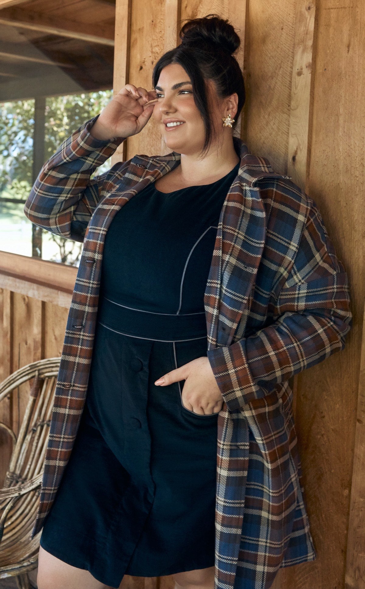 To check sizing, lay a similar garment flat and measure, be sure to double bust, waist, and hip measurements to match ours.