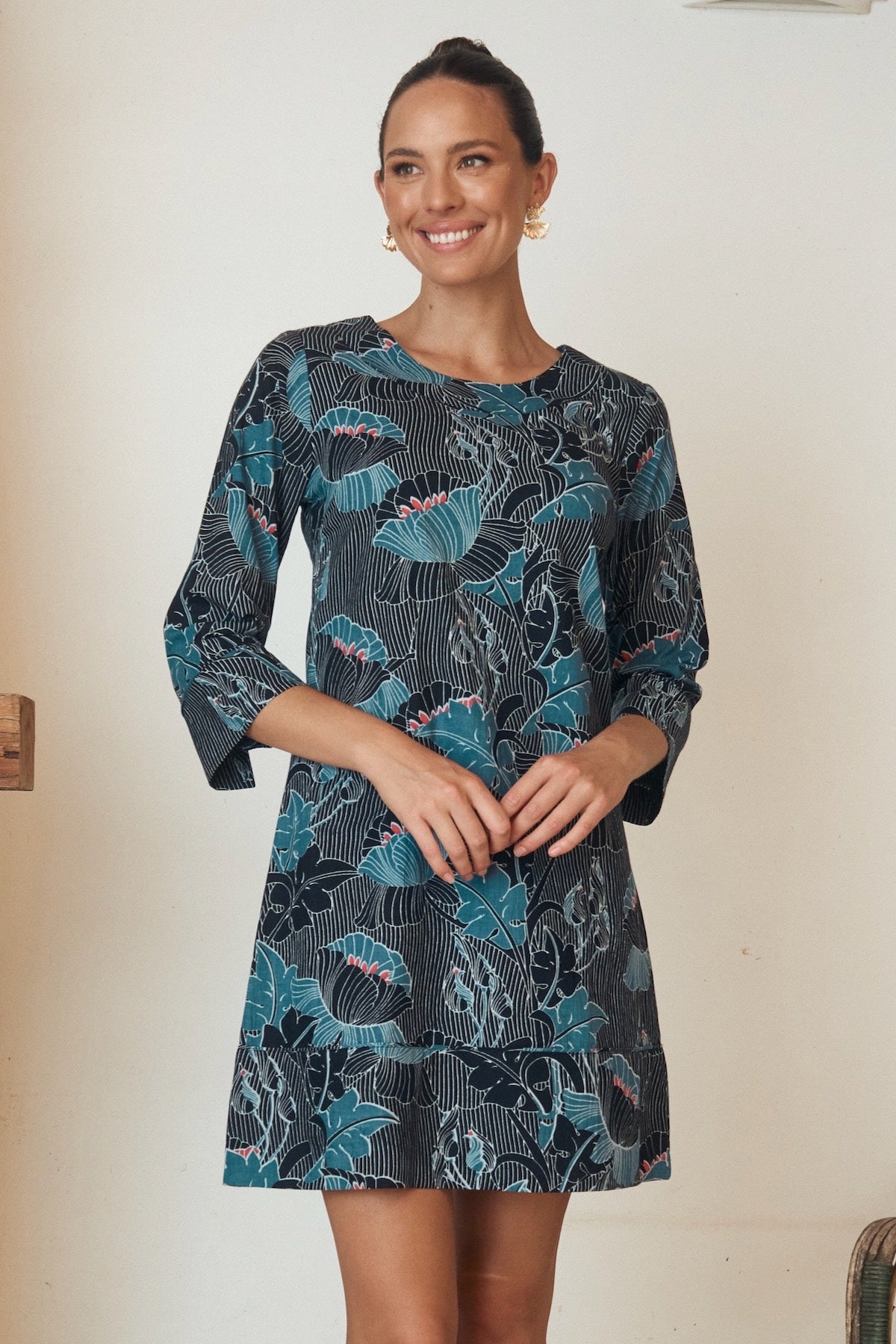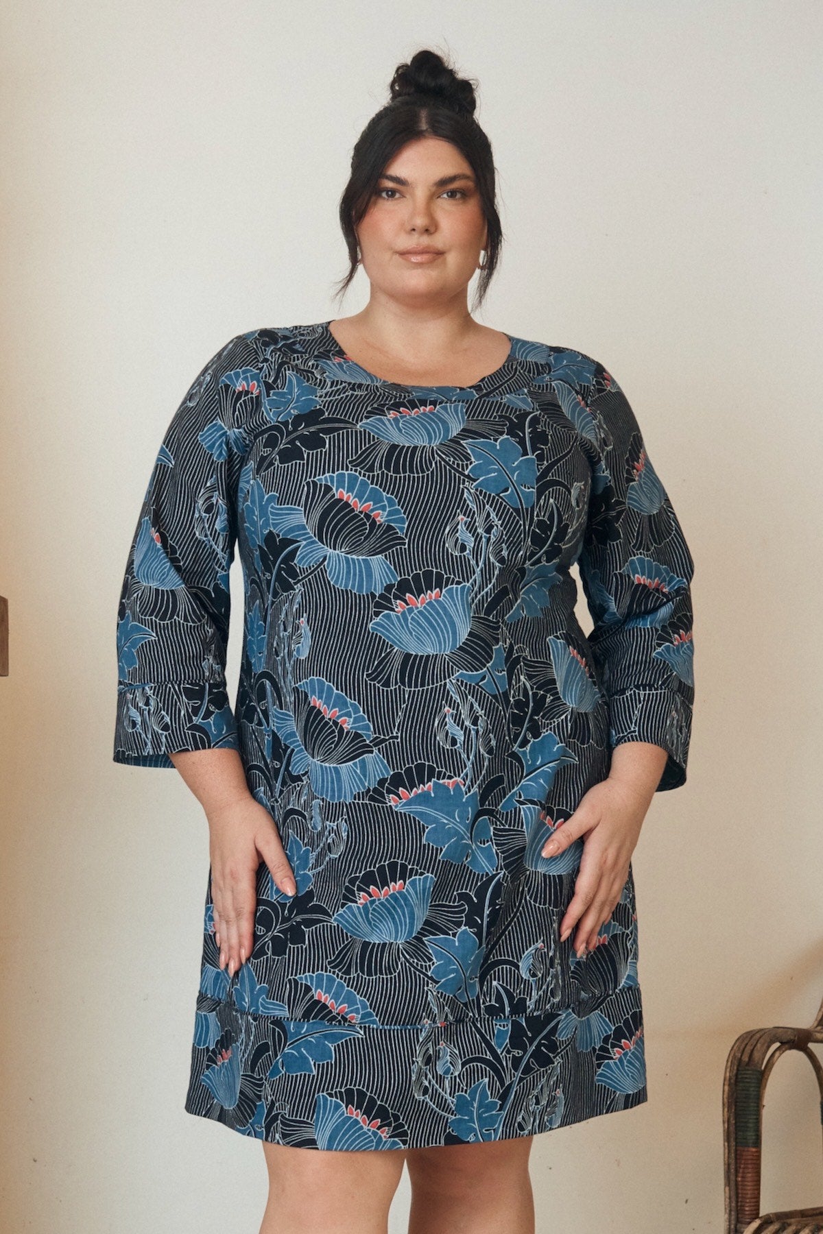 To check sizing, lay a similar garment flat and measure, be sure to double bust, waist, and hip measurements to match ours.