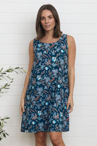 To check sizing, lay a similar garment flat and measure, be sure to double bust, waist, and hip measurements to match ours.