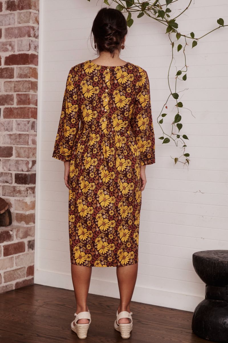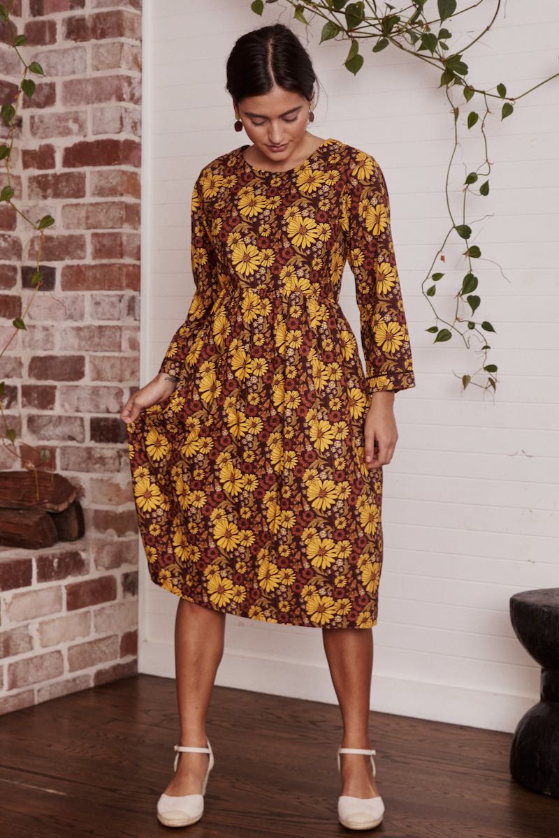 To check sizing, lay a similar garment flat and measure, be sure to double bust, waist, and hip measurements to match ours.