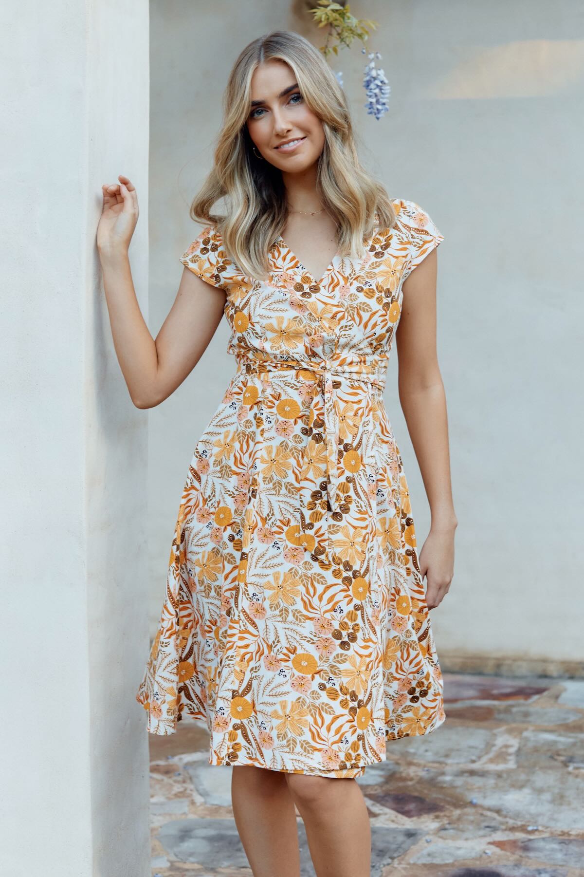 The wrap style is universally flattering. It creates an hourglass silhouette by drawing attention to the waist and flowing gently over the hips. This effortless style is made to flatter all body types, cinching the waist to create a beautiful shape.