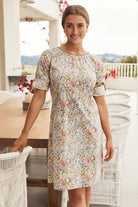 To check sizing, lay a similar garment flat and measure, be sure to double bust, waist, and hip measurements to match ours.