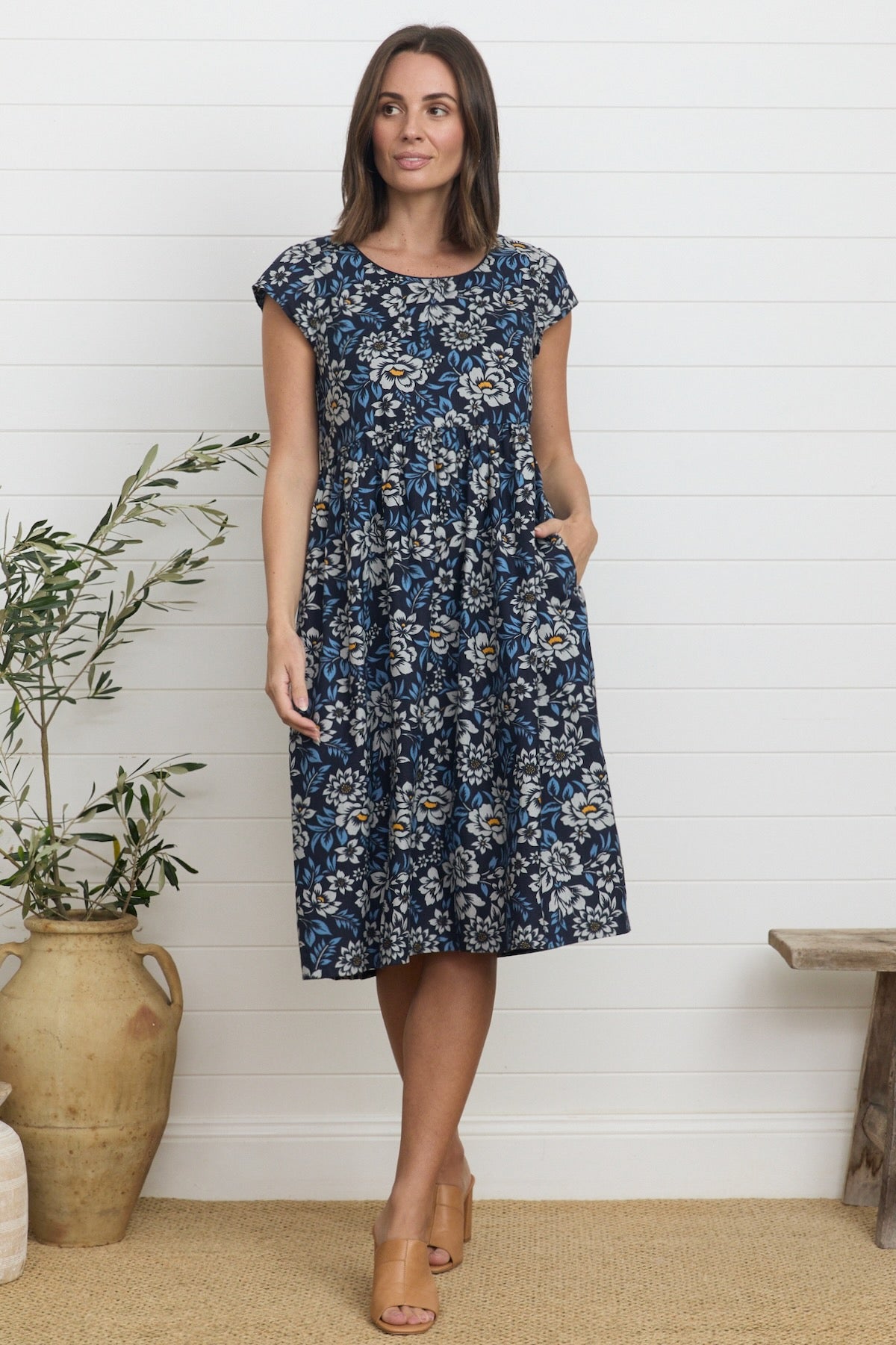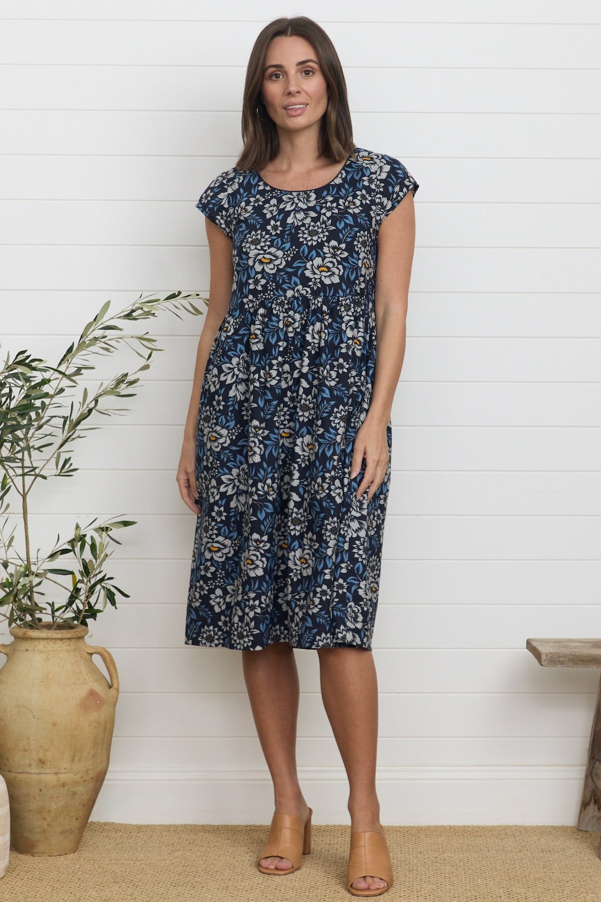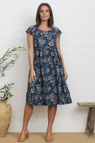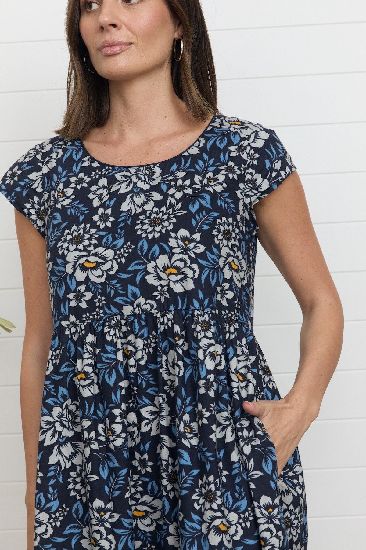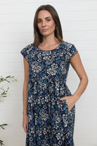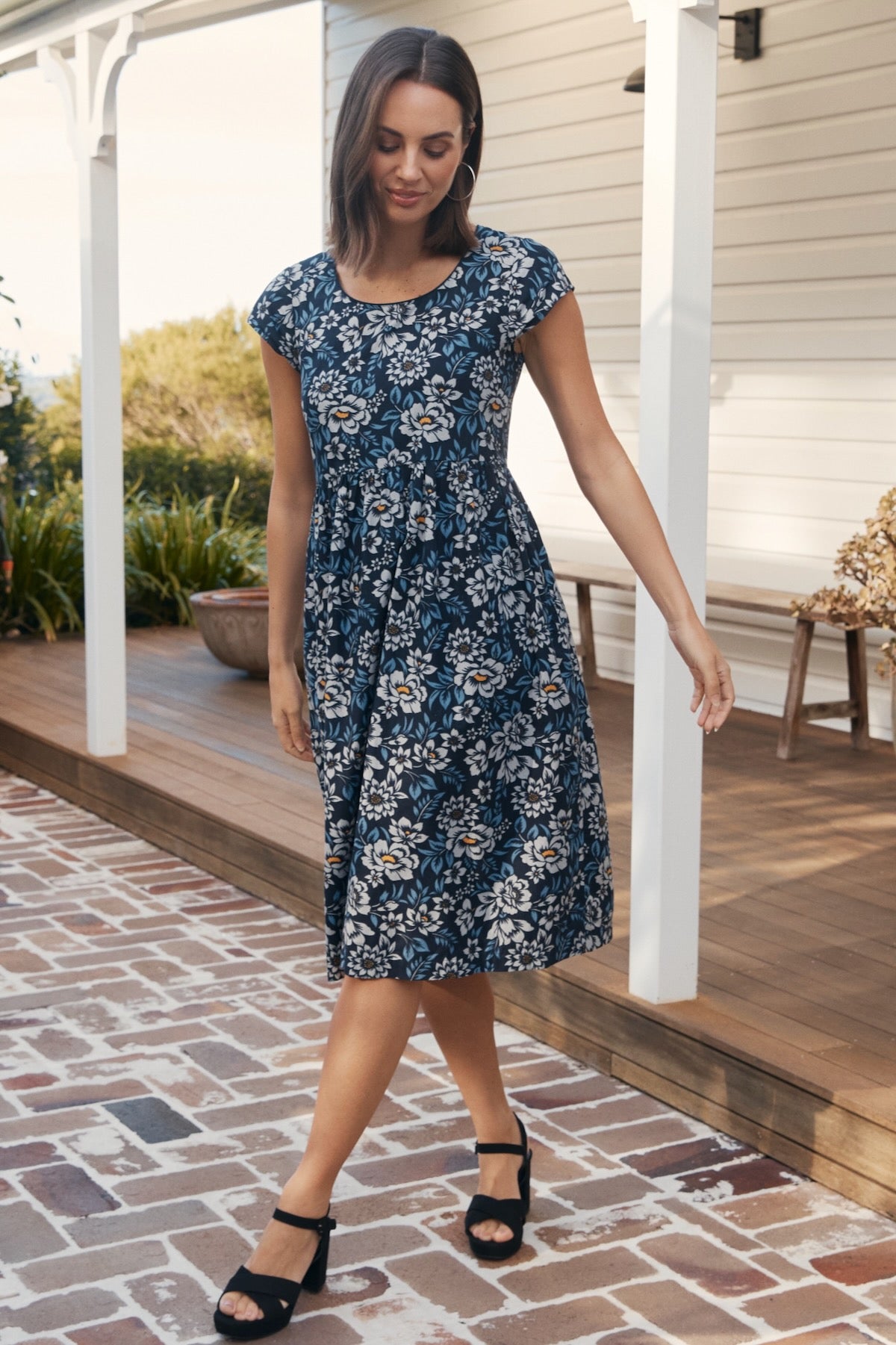 To check sizing, lay a similar garment flat and measure, be sure to double bust, waist, and hip measurements to match ours.
