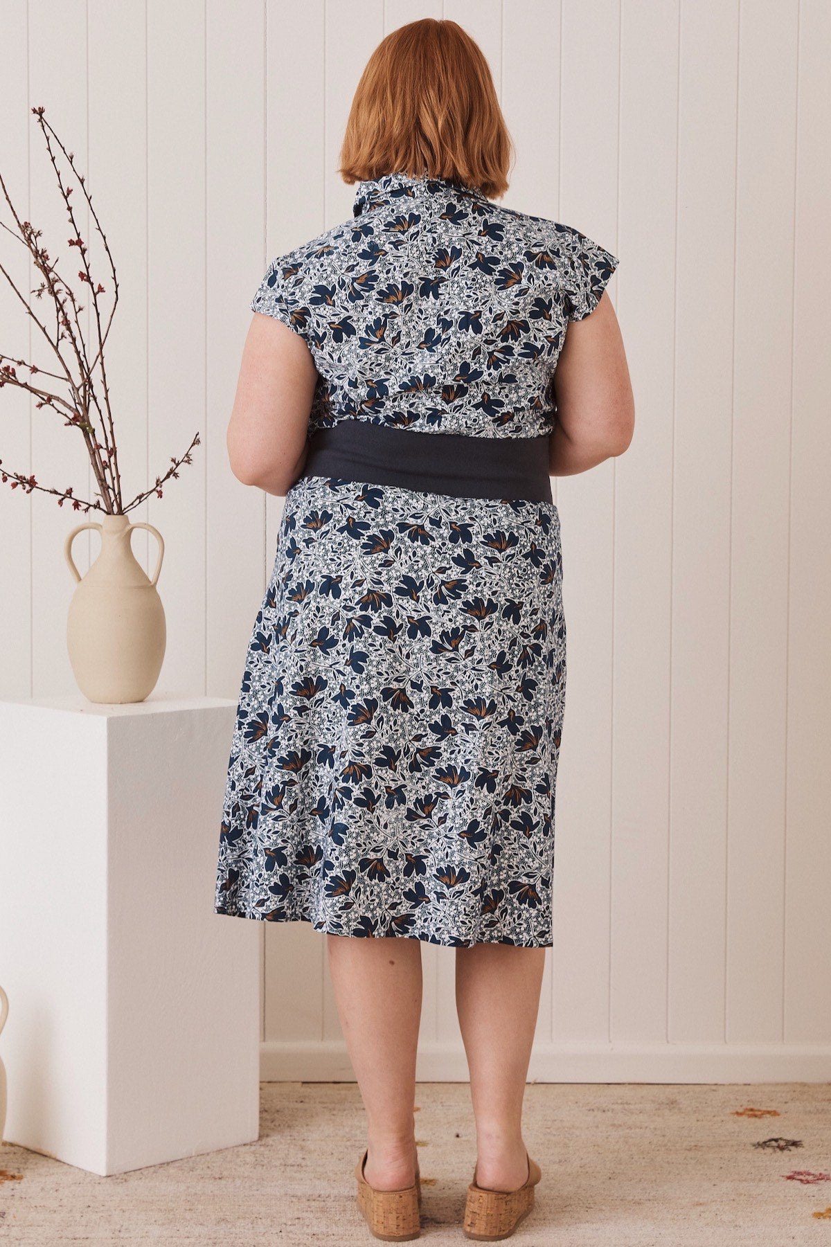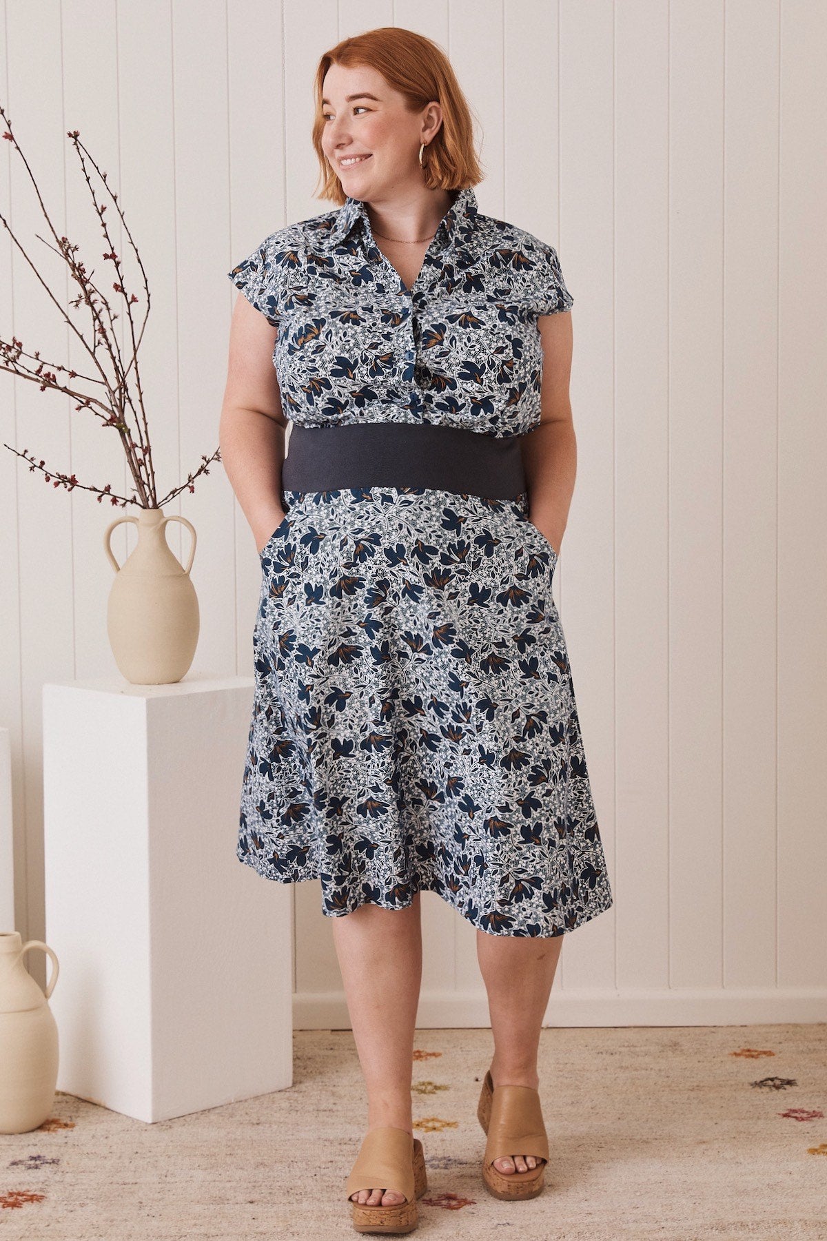 This skirt is that piece that you end up living in. Its straight, A-line shape is super flattering and it has pockets! It can be worn high/mid waisted or down on the hips. The band of the skirt can be folded or left long so you can change the length of the skirt making it incredibly versatile.
