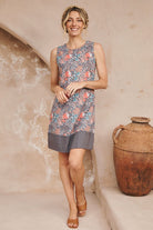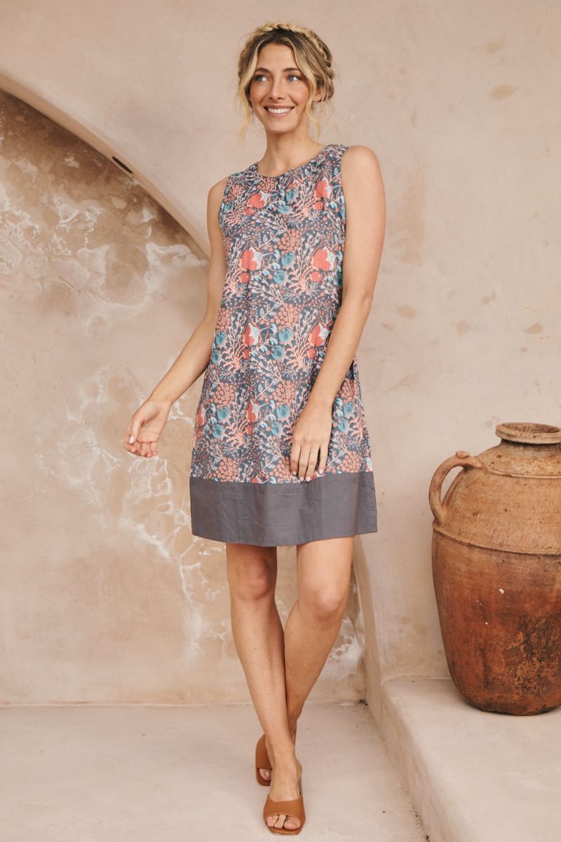 A perfect tunic. Can be worn as a layer over leggings or slacks, even with a long sleeve shirt underneath on those cooler days, or as a cute summer dress.